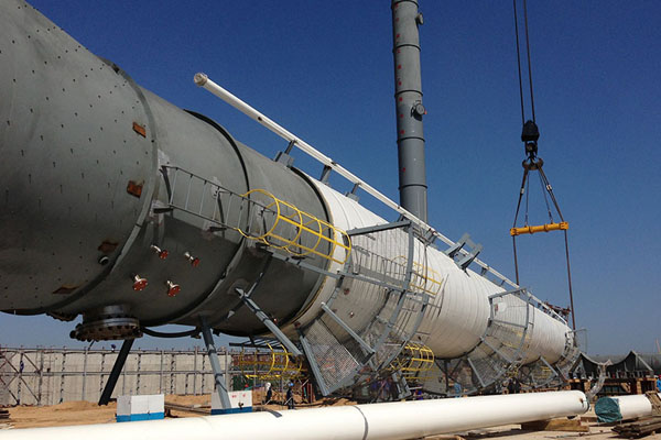 煙臺萬華一期工程環(huán)氧丙烷裝置第一臺高塔設(shè)備進(jìn)場保溫施工